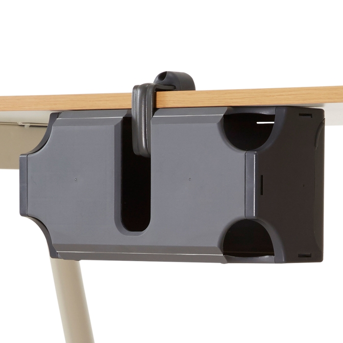 しっかりと挟み込むクランプ式なので、デスクの様々な位置に取り付けられます。天板、すきま、フレーム、デスク下部など、好みの形で、お使いのデスクに取り付けられます。