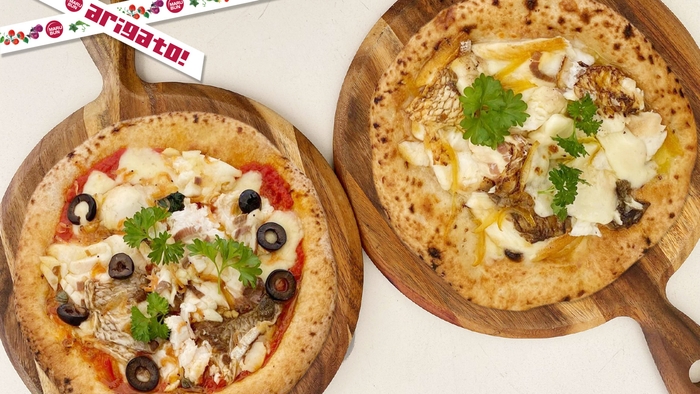 【白ピッツァ】四国・宇和島の日本一の養殖鯛「鯛一郎クン」と寺尾果樹園の瀬戸内レモンのピッツァ(写真右)