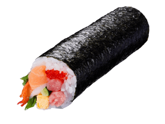 北海道産帆立・まぐろ・ねぎとろ・サーモンなど海鮮がたっぷり入った太巻。