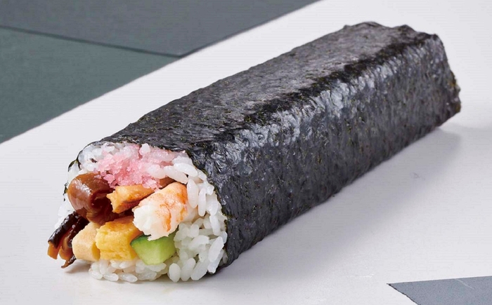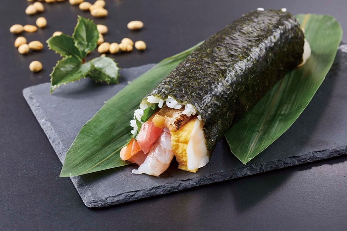ライフプレミアム「贅沢なあご入りおだし」を配合した厚焼き玉子・高野豆腐・椎茸・かんぴょうなどの和風具材たっぷりの太巻。