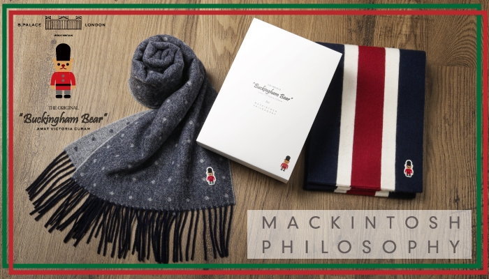 MACKINTOSH PHILOSOPHY(マッキントッシュ フィロソフィー) WEB限定■バッキンガムベアウールマフラーの予約販売をスタート。クリスマスシーズンに嬉しいギフトBOX付き。ーMOONBATー