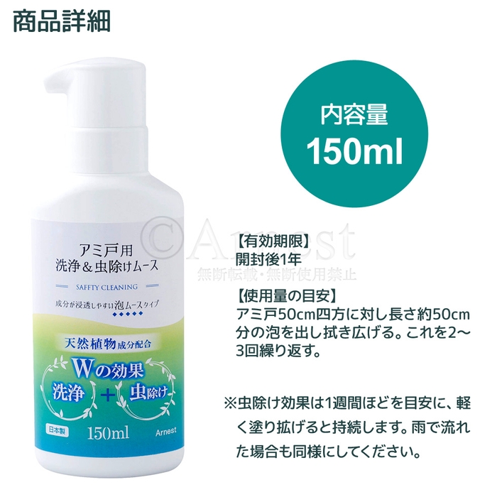しかも、アミ戸にかけて布などで拭き取るだけで洗浄と虫除けが同時に完了。
