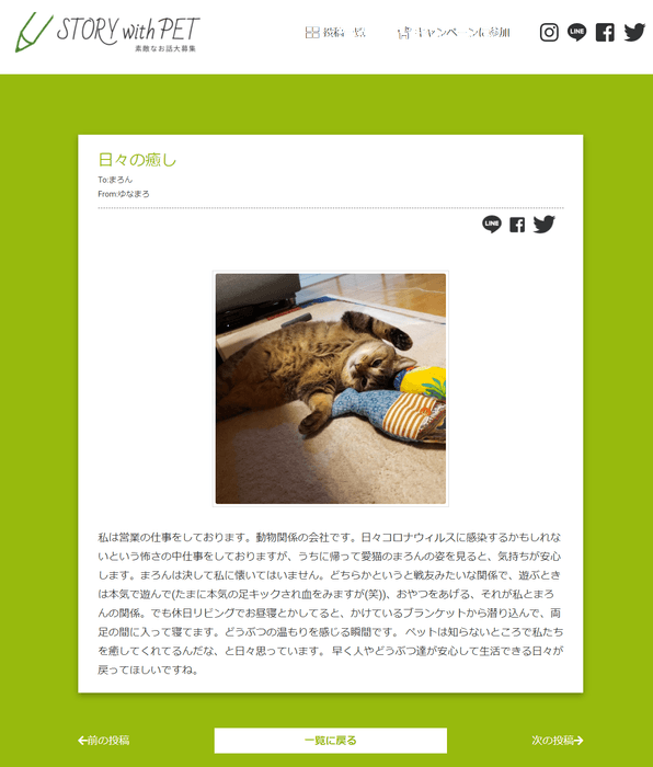 「日々の癒し」。ペットとの絆を語ろう。1投稿500円が寄付になり保護犬猫が救われます