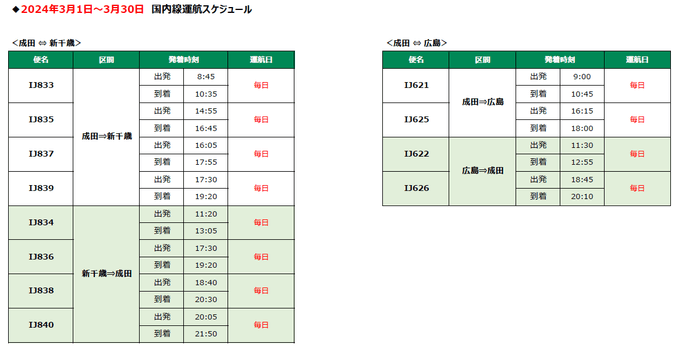 スプリング・ジャパン 2024年1月5日~3月30日 国内線冬ダイヤの販売開始について