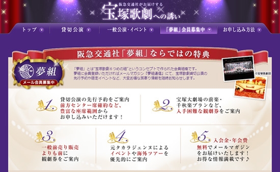 宝塚歌劇の夢組は、以下のような5大特典を持った会員組織です。