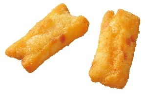 明太子揚げ餅:明太子風味調味液を用いて味付けした揚げあられです。