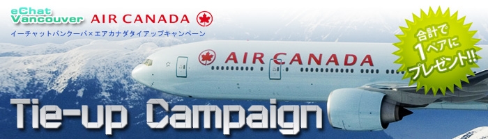 「eChat Vancouver」のリスナーさまには、スタッフ一同、大変感謝しております。今回、この感謝の気持ちを込めて、抽選で“バンクーバー往復航空券”をペアでプレゼントさせていただきます。