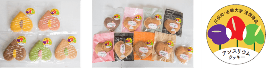 今回はその一環として、株式会社グリム(福島県川俣町)、有限会社竹屋菓子店(福島県川俣町)、福島県川俣町との産官学連携により、川俣町の特産品であり、近畿大学が普及支援を行ってきたアンスリウムの形を模した「アンスリウムクッキー」を開発しました。
