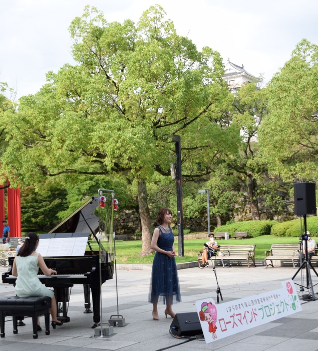 ローズマインドプロジェクト~ミュージック編のキックオフイベントとして,7月28日(火)に,ふくやま美術館前プロムナードで,グランドピアノを設置し,デモンストレーションを行いました。