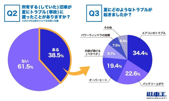 ・調査内容:Q1.旧車のメンテナンスに関して、夏に対策していることを教えてください。 Q2.所有する(していた)旧車が夏にトラブル(故障)に遭ったことがありますか? Q3.夏にどのようなトラブルが起きましたか?
