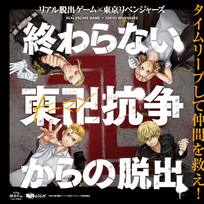 株式会社SCRAP(本社:東京都渋谷区 代表:加藤隆生)は、完売公演が続出した大人気イベント「リアル脱出ゲーム×東京リベンジャーズ」の最新作『東京卍會渋谷大抗争からの脱出』を2023年1月24日(火)より渋谷にて開催いたします。