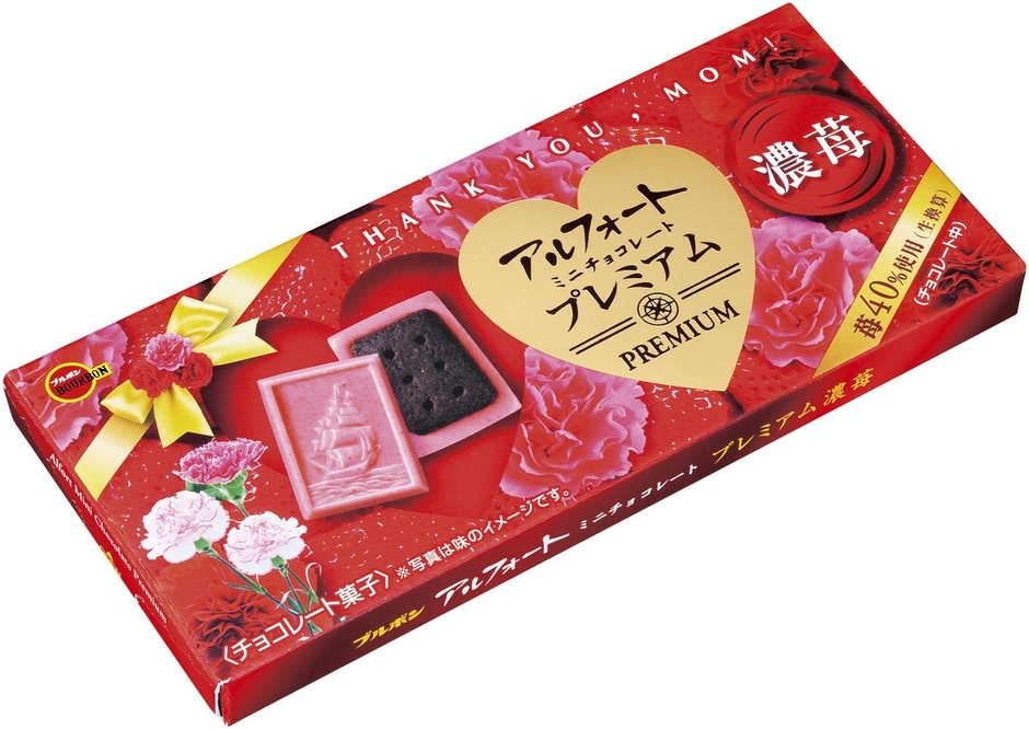 ブルボン、母の日デザインのプレミアムなアルフォート  「アルフォートミニチョコレートプレミアム濃苺(母の日)」 4月10日(火)に新発売!