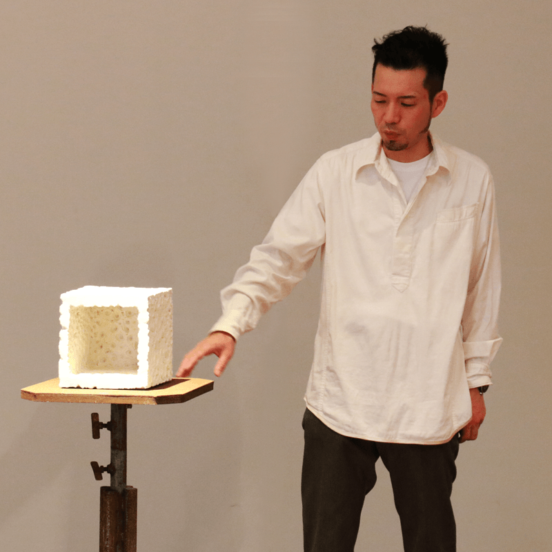 本展では「やきもの」の可能性を探求し、多様な表現活動を行う「やきもの作家」の上田順平氏が、自動車やスマートフォンなどの部品として幅広く使われるファインセラミックスを、芸術的観点から捉えた意欲的な新作16点を公開中です。7月1日(土)14:00からは、上田順平氏ご本人による本展示作品のストーリーを紹介するギャラリートークを実施します(入場無料)。