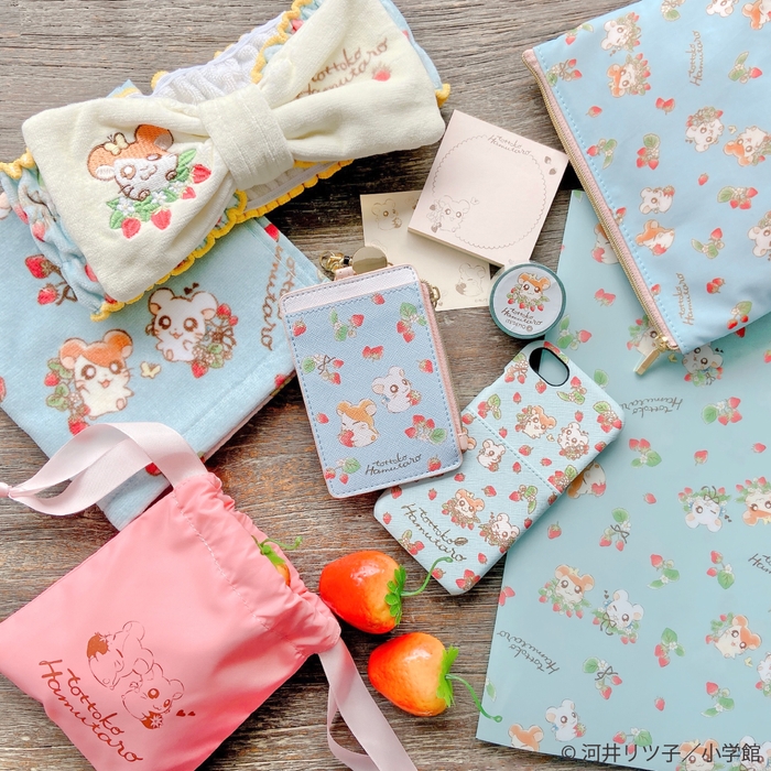 今回のアートは、風船に乗ってふわふわと空を飛び、幸せの種を届けに行くハム太郎たちが描かれた「風船柄」と、甘酸っぱい片思いを描いた「いちご柄」の2種類。どちらも「イッツデモ」だけのオリジナルアートでふんわり、やさしい色使いで仕上げています。タオルやポーチ、ステーショナリーまで、毎日使いたくなるアイテムは、自分用にはもちろんギフトにもぴったりのラインナップです。