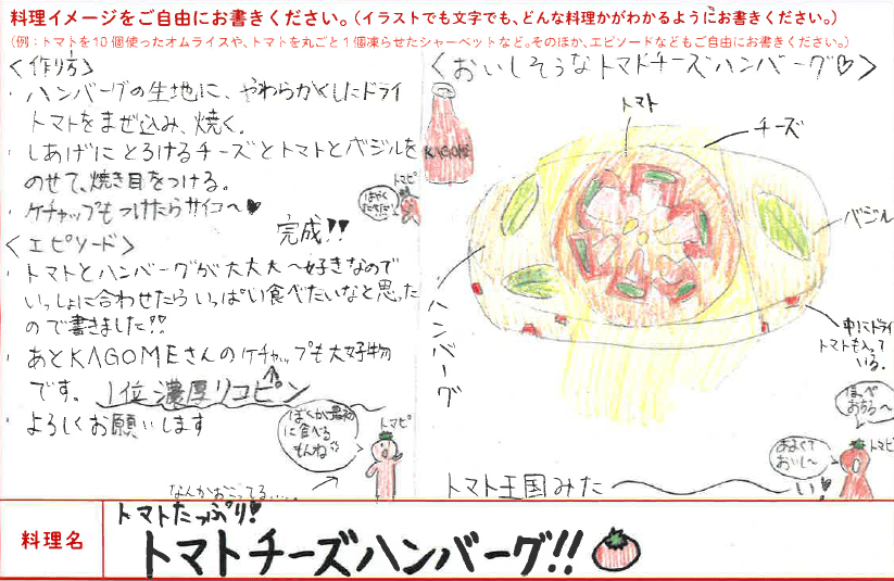 事前にご応募頂いたお客様(小学生)から4名の方が考えたトマトメニューを再現し限定販売します。