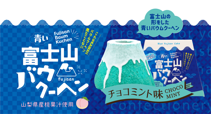 「富士山プロダクト」は、山梨県甲府市で富士山に関連した様々な製品、食べ物、土産品、メニュー、事業などの企画開発・販売等を行っている事業体になります。そんな富士山に関連した新商品をシリーズ7個目となる「青い富士山バウムクーヘン」の販売を開始。 今回の新商品では、よりリアルな富士山を3Dで再現されており、山肌の色味から富士山に被った雪までを忠実に再現している。