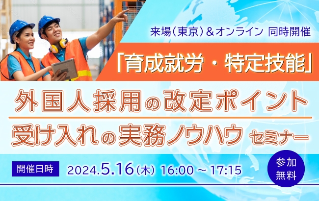 【セミナー開催のお知らせ】「育成就労・特定技能」外国人採用の改定ポイントと受け入れの実務ノウハウセミナー