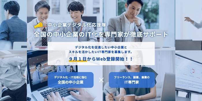 ※1 本事業は、中小企業庁及び中小企業基盤整備機構による事業であり、当社は事務局を受託しているアデコ株式会社からの委託を受け、中小企業開拓/IT専門家開拓パートナーとしてご支援しております。