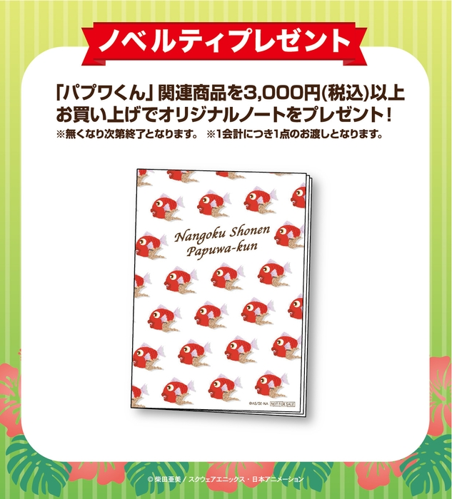 同店では、 TVアニメ化30周年を迎えた「南国少年パプワくん」の新商品5アイテムを先行販売するほか、関連商品を販売いたします。また「東京パプワゴン」の開催に合わせて、豪華ノベルティも用意しておりますのでお楽しみに!