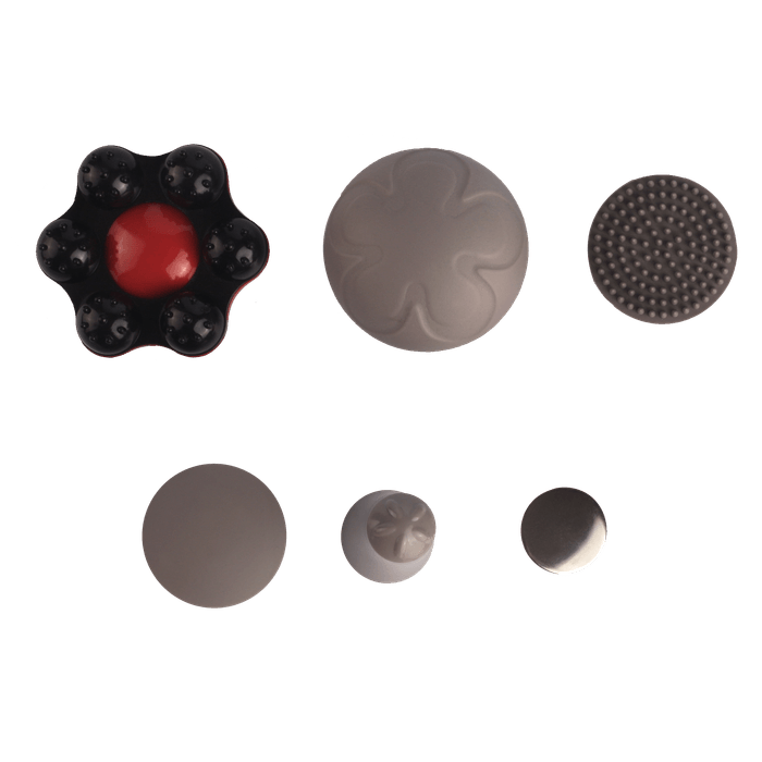 プラスチック製のマッサージヘッド。マッサージを行う部位が肉付きがよい部分に使用します。筋肉のある肩、腕、太もも、腹などに使用します。硬い6つの突起物が広範囲にマッサージを行います。6つの指で強く押すような感覚があり、強烈なマッサージを行います。※肉付きの薄い部位に使用すると、痛みを感じる場合があります。