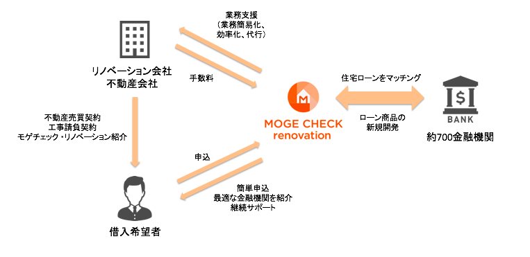 テクノロジーを活用したリノベーション・プラットフォーム事業を全国で展開し、国内第1位(※1)のワンストップ・リノベーション事業者であるリノべる株式会社(本社:東京都渋谷区、代表取締役:山下 智弘、以下「リノベる」)と、オンライン住宅ローンマッチングサービス「モゲチェック」を運営する株式会社MFS(本社:東京都千代田区、代表取締役CEO:中山田 明、以下「MFS」)は、2019年8月22日、リノベーション会社および住宅ローン借り入れ希望者を対象に中古住宅購入+リノベーションの一括ローンやリノベーション済み物件の住宅ローンマッチングを支援する合弁会社「モゲチェック・リノベーション株式会社」(本社:東京都千代田区、代表取締役:三浦 隆博、以下「モゲチェック・リノベーション」)を設立し、9月9日よりサービス提供を開始します。