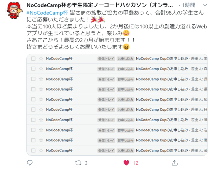 7月から始まる、NoCodeのハッカソンは、98名の方に参加表明頂きました!