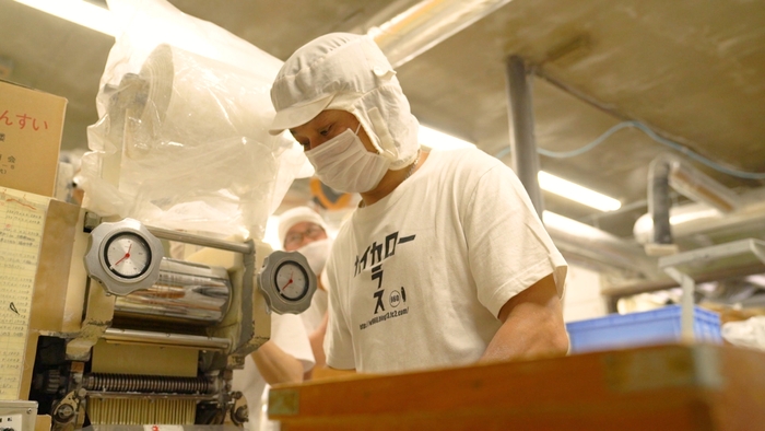 次に登場するのは、毎日4万食の麺を作り続け、全国約800ものラーメン店に卸し、ラーメン通の間では「その名を知らない人はいない」と言われている製麺所「浅草開花楼」の凄腕職人・カラスさんこと石倉さん。