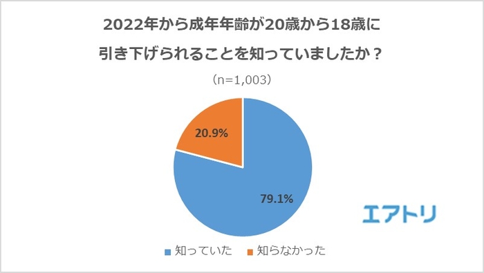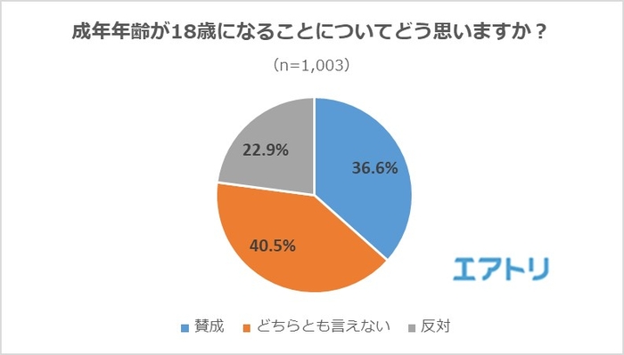 株式会社エアトリ(本社:東京都港区、代表取締役社長 兼 CFO:柴田 裕亮)の子会社で総合旅行プラットフォーム「エアトリ」(https://www.airtrip.jp/)を運営する株式会社エアトリインターナショナル(本社:東京都新宿区、代表取締役社長:柴田 裕亮)は、20代~70代の男女1,003名を対象に「成年年齢の引き下げ」に関する調査を実施しました。