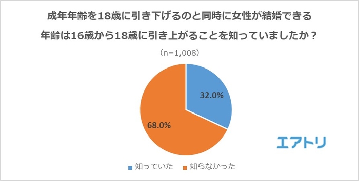 成年年齢の引き下げについては8割もの人が知っていた一方で、女性の結婚可能年齢が引き上がることについては7割近くの人が「知らなかった」と回答しました。