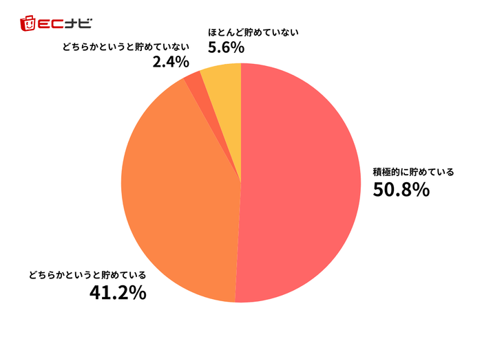 ポイ活に対する意識について、9割以上の人が「貯めている」と回答しました。その中でも5割以上の人が「積極的に貯めている」と回答し、多くの人がポイ活に対する意識が高いことが分かりました。