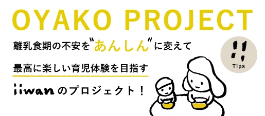 こどもブランドiiwanは8年程前から乳児院で暮らす子どもたちへ食器を贈る活動を続ける中で、親子が一緒に楽しく暮らせることは決して当たり前のことではないことを強く感じました。”子どものはじめての体験を最高のものにする”コンセプトに食器を開発し、お届けしてきましたが、本当の意味でこのミッションを達成するためには、もっと親子に寄り添った、特に離乳食期をまたぐ産後1年間の育児負担を軽くするための活動をしていくべきだと思い「OYAKOプロジェクト」を立ち上げました。