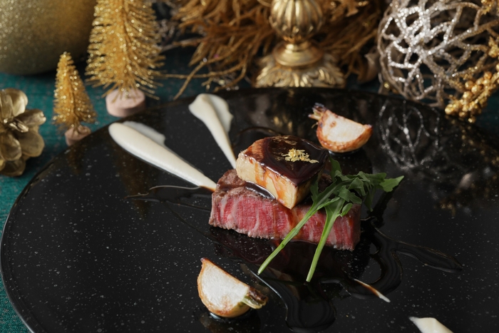 提供するお料理は、キャビア・トリュフ・フォアグラの世界三大珍味やズワイ蟹、黒あわび茸、オマール海老など高級食材をふんだんに使用したメニュー内容でご用意。季節の林檎と爽やかなリコッタチーズがアクセントになったズワイ蟹とキャビアのブルスケッタに始まり、芳醇なトリュフの香りも楽しめるオイルパスタや黒毛和牛フィレ肉とフォアグラのローストなど、ロマンチックな聖夜に彩りを添えます。大切なお相手と記念に残るクリスマスをお過ごしください。