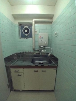 古びたキッチンは建物の古さを際立たせ、タイル目地の汚れも不潔な印象を与えます。