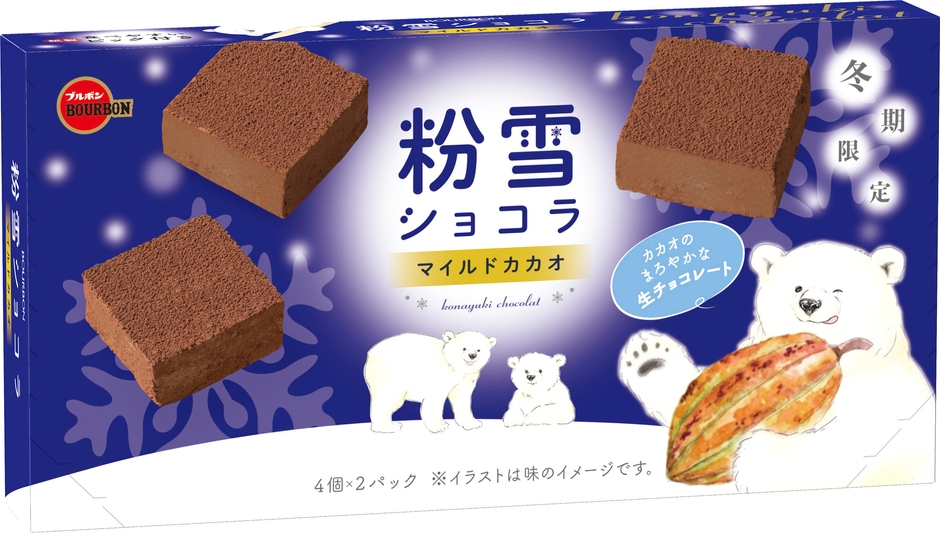 ブルボン、くちどけとともに広がるコクのあるカカオの味わい 「粉雪ショコラマイルドカカオ」を1月14日(火)に新発売!