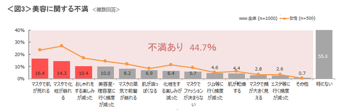 コロナ禍の美容に関する不満 1位は「マスクによる肌荒れ」 美容に使う費用は抑える傾向