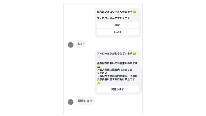 ・「はい」を選択した方だけにテンプレート画像をプレゼント