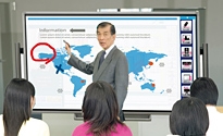アクティブラーニングでも活躍! 電子黒板やパソコンで教室の音響・映像設備のワンタッチ操作ができます。 東和エンジニアリングの「タッチパレット」