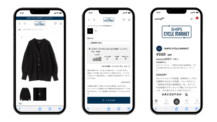 株式会社シップス(本社:東京都中央区、代表取締役社長:原裕章)が展開する「SHIPS」は、2025年7月1日に立ち上げた公式リユースECサイト「SHIPS CYCLE MARKET」 ( https://ships-cycle-market.jp/ )に、株式会社comvey(コンベイ、本社:東京都中央区、代表取締役:梶田伸吾)が展開するごみゼロ梱包「シェアバッグ®︎」およびオペレーションシステムを導入したことをお知らせいたします。本サービスの導入により、利用者の梱包ストレスを解消できるほか、配送で発生する梱包ごみを最小限に抑え、ダンボール回収やごみ焼却時に発生するCO2排出量を85%以上削減、脱炭素化を推進することが可能となります。