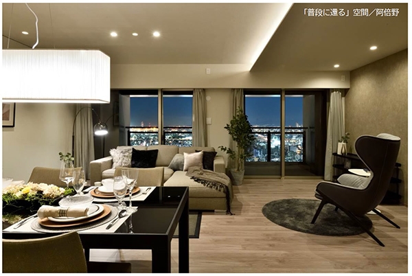 今回販売している物件は、大阪市阿倍野区のタワーマンション38階の一室を「普段に還る」をコンセプトにリノベーションしました。日常は外世界を飛び回るようなアクティブなオーナーが、ここに戻ったときは普段の日常に戻れる空間づくりを行いました。