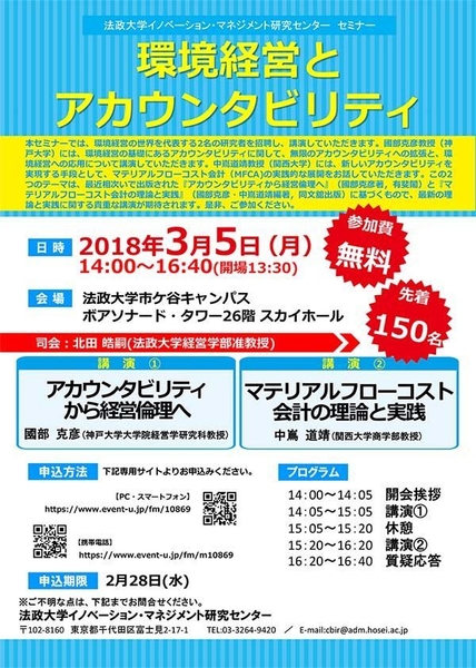 アカウンタビリティの拡張と環境経営への応用について  法政大学 市ケ谷キャンパスで3月5日にセミナー開催