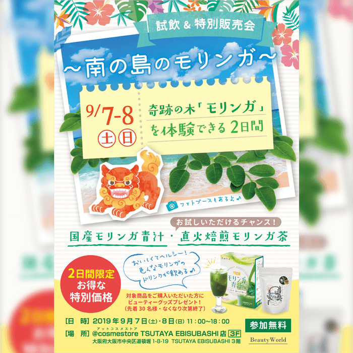 300の病を予防し、90種以上の豊富な栄養素を含むスーパーフード「モリンガ」を使用した商品が体験できる試飲&販売会を開催!