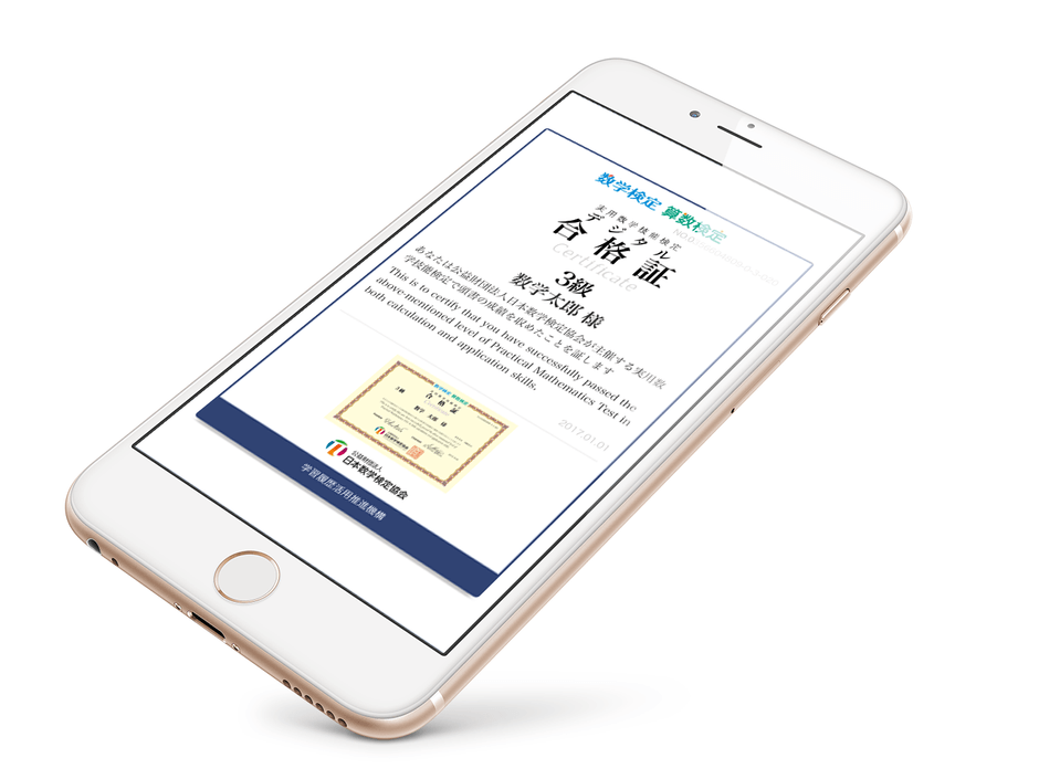 公益財団法人日本数学検定協会(所在地:東京都台東区、理事長:清水 静海)は、実用数学技能検定(以下、数学検定)におけるデジタル合格証の発行を2017年5月17日(水)から開始いたします。このデジタル合格証発行のシステムは、学習履歴活用推進機構(所在地:東京都台東区、理事長:小林 建太郎)が開発したもので、検定団体による本システムの利用は、当協会が初となります。