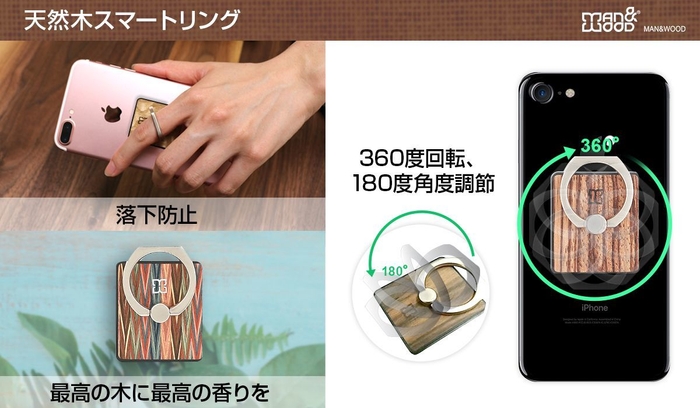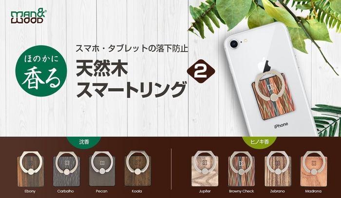 Man&Wood、ほのかに香る天然木を使用したスマホリング新発売