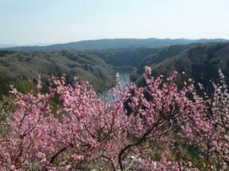 湖岸から山腹にかけて赤や白など様々な種類の梅をご鑑賞いただけます。