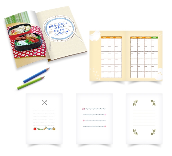 第1弾は、短い罫線にかわいいイラストをあしらったメモ用のテンプレート画像をご用意。提供開始以来、すでに多くのお客様にご利用いただいております。この反響を受け、このたびメモ用画像をさらに追加しました。バラエティに富んだデザインの中から、お好みのものをお選びください。