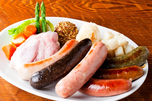 ・フランクプレート(ソーセージ5本、ジャーマンポテト、ザワークラウトのセット)