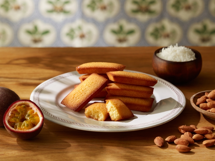 アーモンドとココナッツをたっぷり使用し、トロピカルフルーツのピューレを加えた爽やかなフィナンシェです。オレンジピールが食感と味わいの深みを演出します。