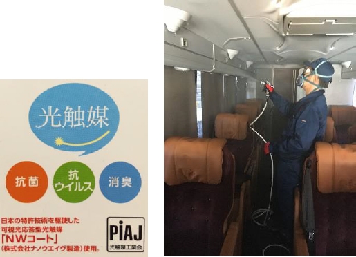 具体的には、光触媒のコーティングによる抗菌対策のための施工で、バス会社やホテル、レストランなどを対象としています。