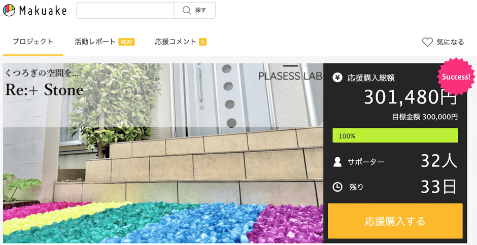 2020年7月4日(土)よりクラウドファンディングサイトMakuakeにて開始した、『24色の防犯砂利であなたの思い描いたお庭を実現 ~防犯砂利でギネスブック挑戦~』のプロジェクトが、終了日の2020年8月30日(日)まで残り日数30日で、早くも目標金額の100%のご支援を達成したことをご報告いたします。