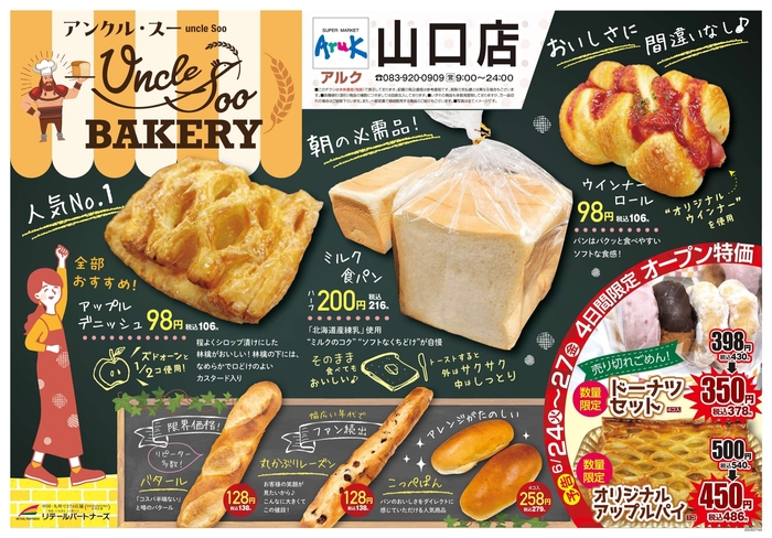 山口市に初出店! 「アンクル・スー」(オリジナル焼きたてパンコーナー)がアルク山口店にオープン!